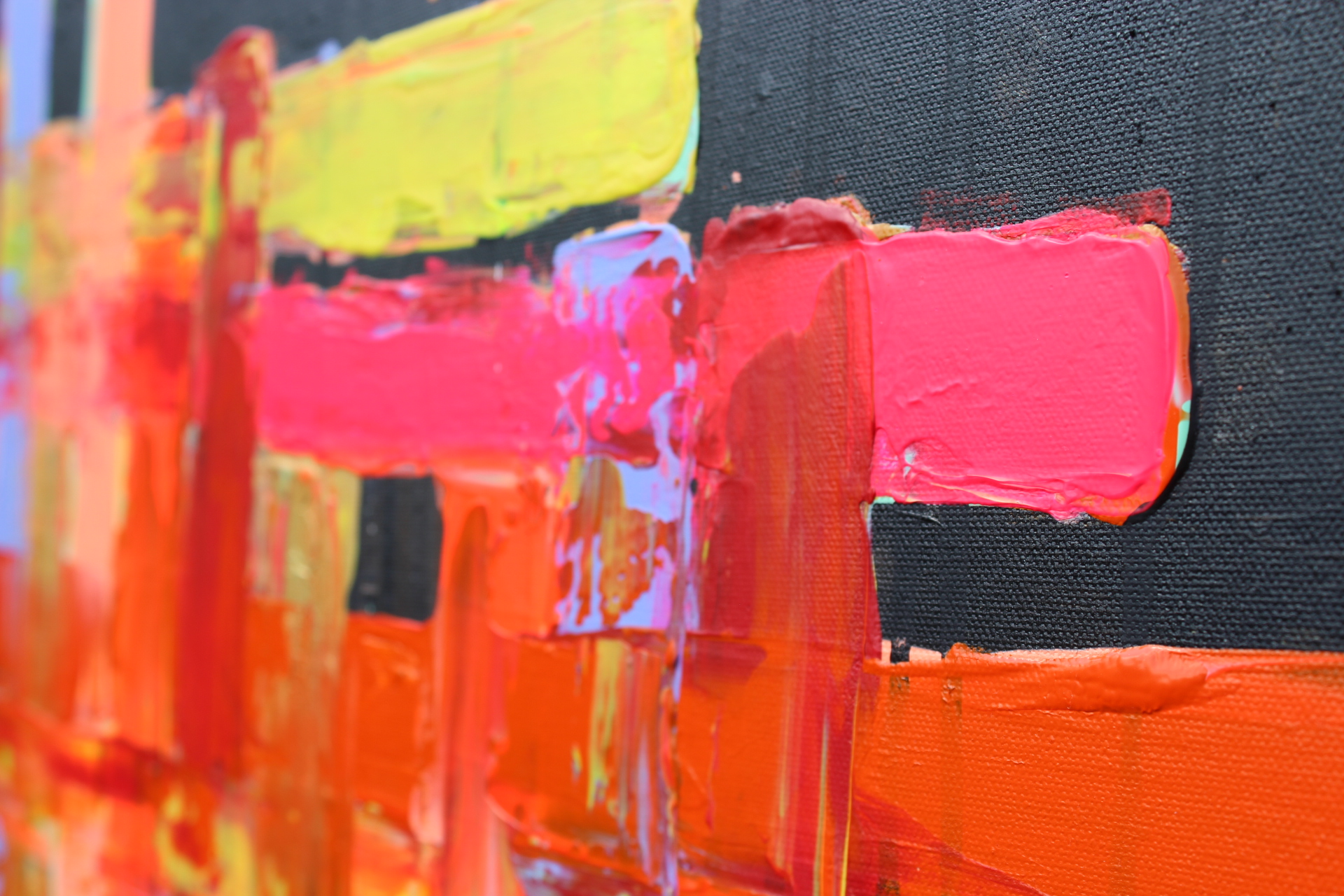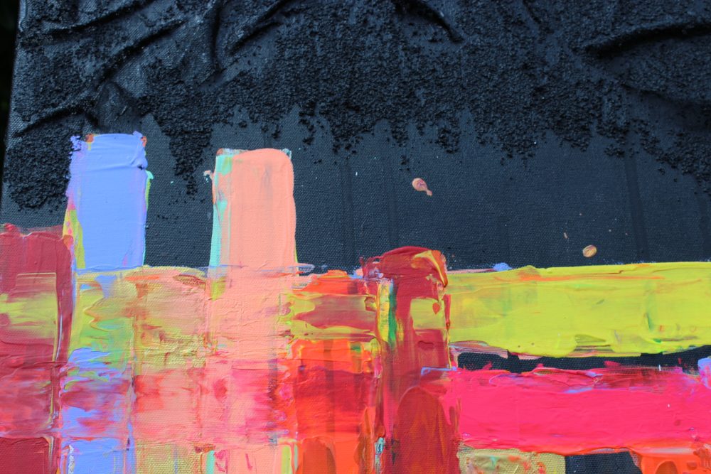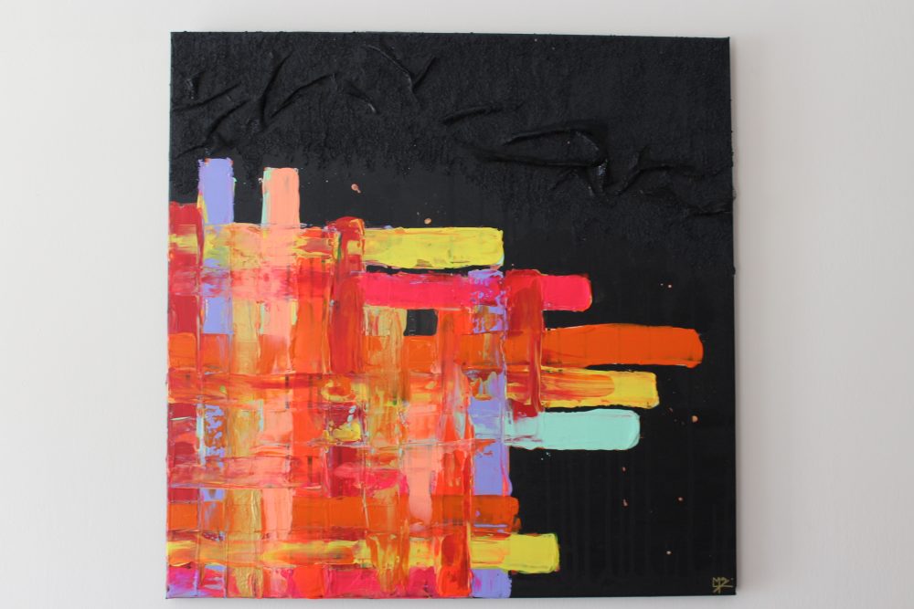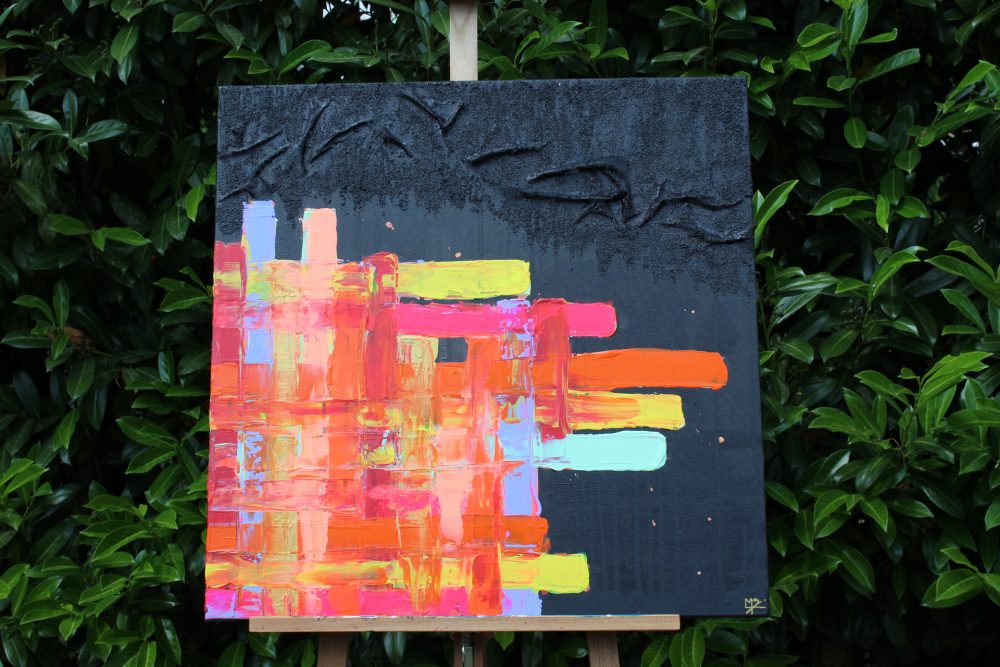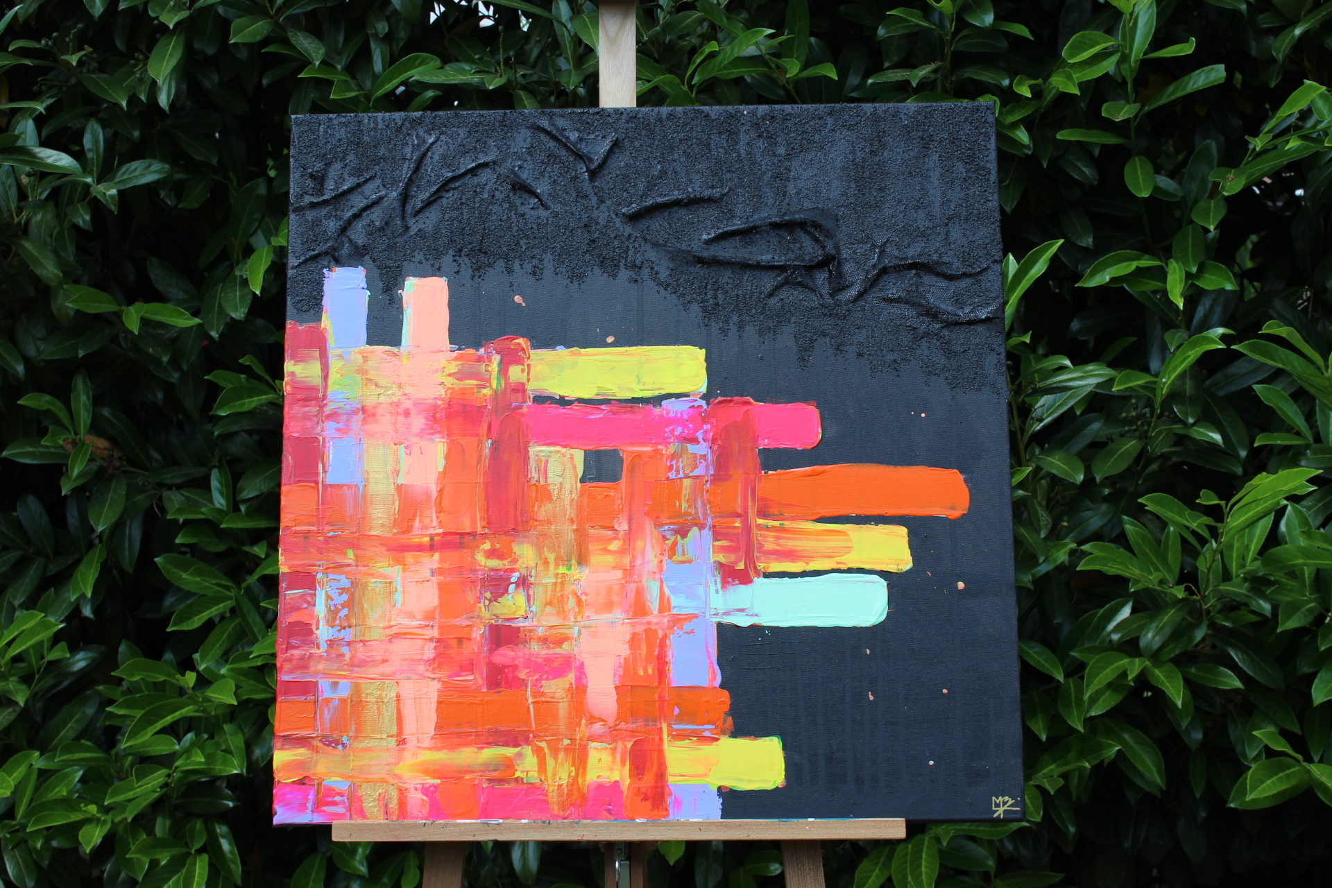 Acrylfarbe und Tüll auf Leinwand 70 x 70 cm